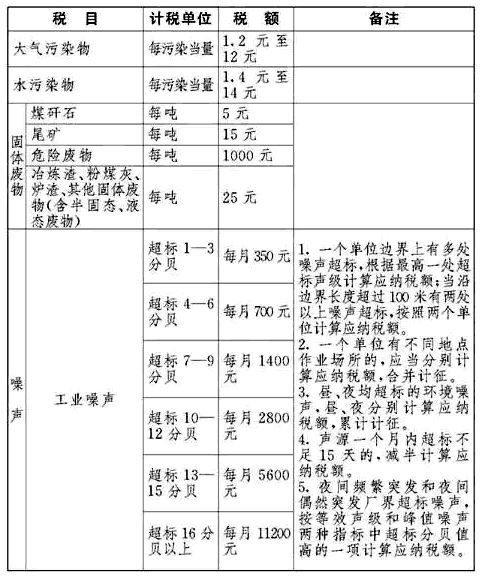 ▼環保稅稅目稅額表